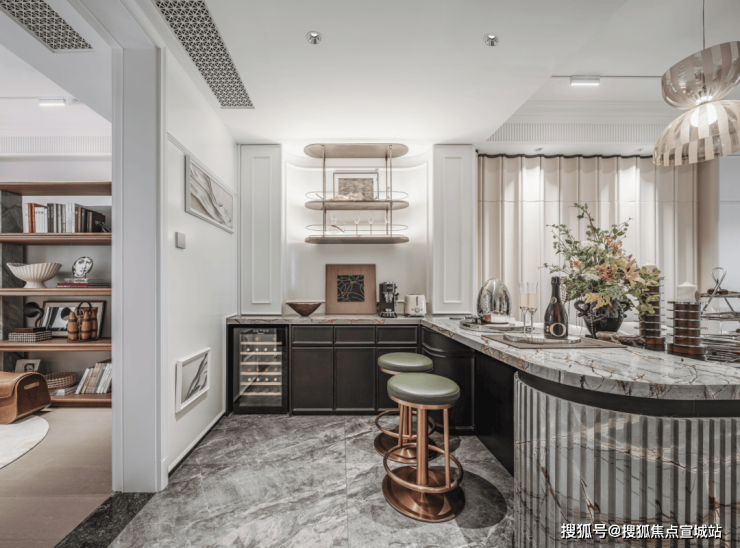 背景墙比别人更多一点.天然石材的电视背景墙,高级大气;编织皮革的客厅背景墙,充满质感;过度用的是白色木饰纹的背景墙,简约耐看;餐厅处又是白色皮革背景墙,大方优雅.整个空间过渡自然,增加了层次感和高级感.