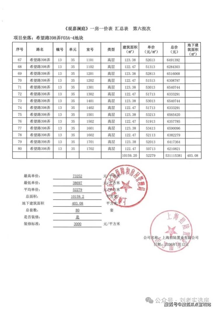 本批次一房一价表如下: