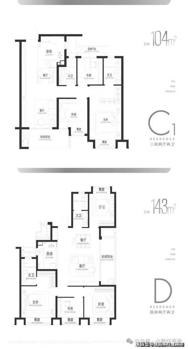 建面约95-143m²3/4房
