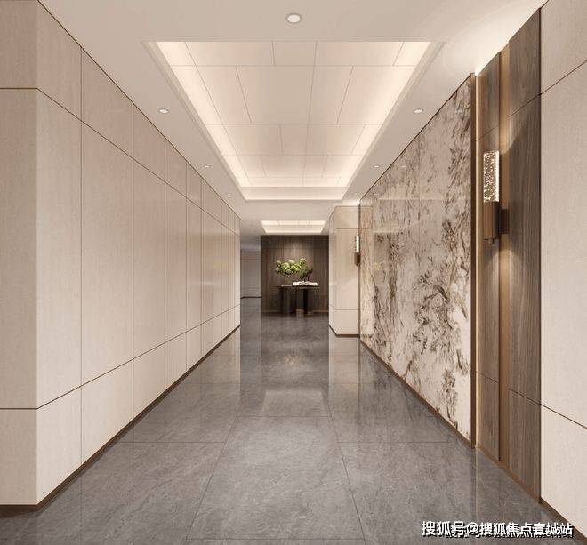约4.75米层高、约32㎡的精装大堂,配置雪山银狐背景墙,踏入大门就能感受到满满的尊崇感。