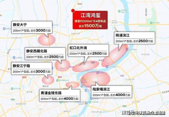 另一方面,在如今普遍约10万+的上海中环沿线,以1500万级的价格就能买建面约200㎡起大4房,目前只有江湾鸿玺一盘。