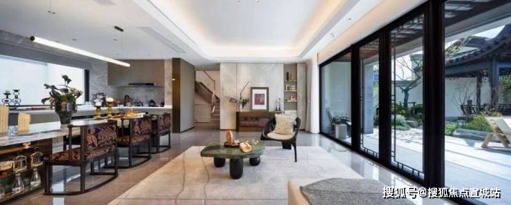 客厅与花园相连,内外相通的设计,让生活空间不再局限于屋檐之下,而是向花园空间延伸,与自然融合。一方花园中,纳藏生活万千诗意,抬眼可见日月星辰,垂眼即见诗意满园。