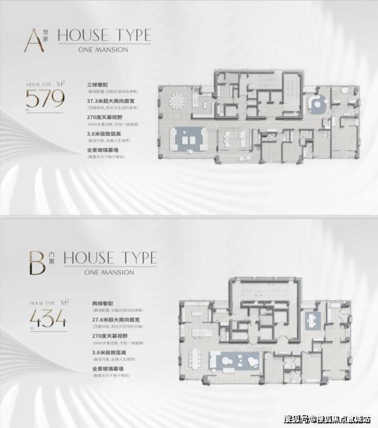 1号楼579㎡一层三梯奢阔空间;2号楼434㎡一层两梯奢阔空间,共计35套房源。