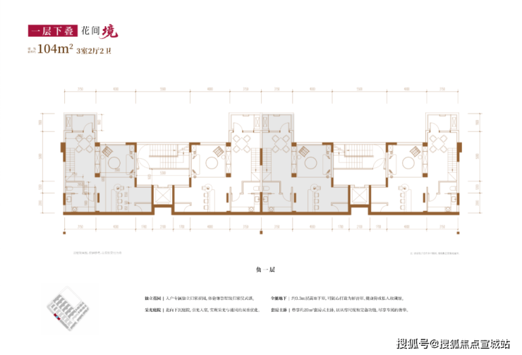 建面约104㎡3房2厅2卫(一层下叠):