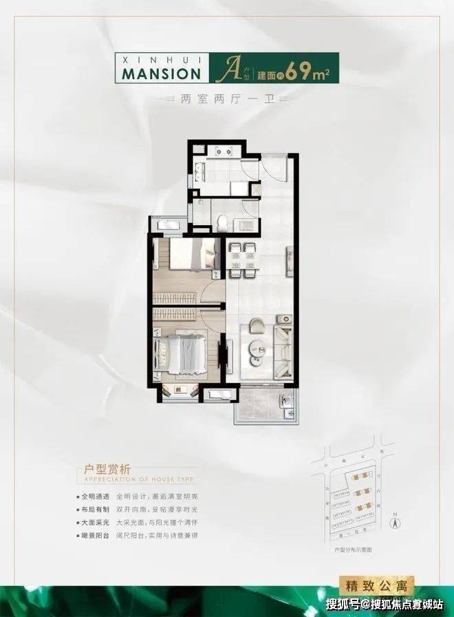 得房率:约80%,二梯二户