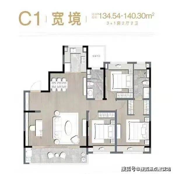 目前项目还有少量约122㎡和140㎡户型在售,3/4房设计,居住舒适度很高。