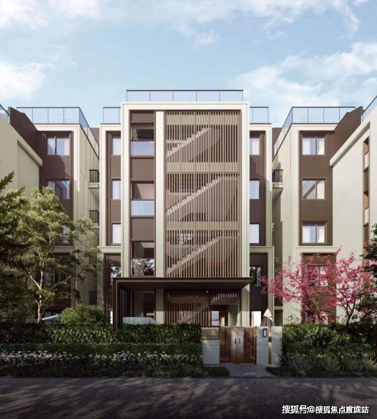 建筑采用现代美学立面,简约潮流,彰显城市精英的风范。窗棱格构的设计别具一格,打破了室内外界限的同时,带来充裕的采光和更好的景观视野。