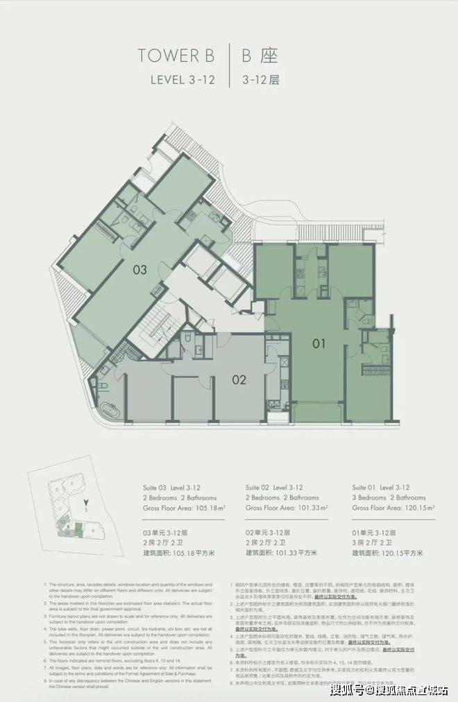 B座 建面约105㎡&101㎡&120㎡,3-12层平面图☑️☑️嘉盈峰售楼处电话:400-8123-224☑️☑️