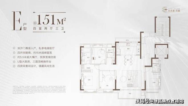户型设计:项目提供多样化的户型选择,满足不同家庭的需求。主力户型为建面约71-151㎡的2-4房,户型设计合理,空间利用率高。其中,122㎡四房户型为南北通透+双套房设计,是项目的王牌户型。