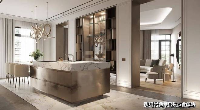 未来港元启售楼处营销中心:400-8118-224未来港元启售楼处电话/地址☎:400-8118-224(开发商热线)在厨房的设计中依然沿袭客厅的设计采用大理石元素,通过金属元素与大理石元素的结合来表现空间的轻奢,其中金属的岛台加上大理石台面让空间极具氛围感,让空间看上去更有层次。