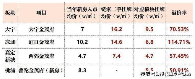 据贝壳数据统计,金茂府与同板块二手房相比,挂牌均价比板块均价高出50%以上,最高溢价甚至高达约114.71%!