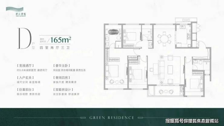 建面约165㎡4房为社区内的大户型,主要位于本次推出的楼王位置, 四开间朝南、南向双套房,主卫竟然还是 双台盆设计,妥妥豪宅配置.