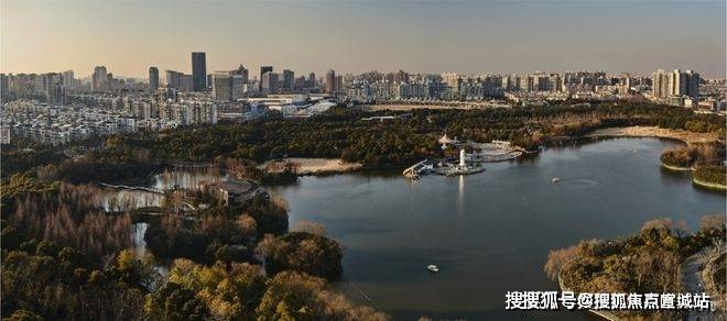 落日时可挽着爱人,一边漫步湖畔遛娃遛狗,一边看天边余霞成绮,湖中碎光点点,人与自然融为一体。