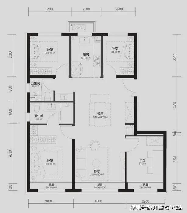 每个空间都很方正,空间利用率很高,全屋全明格局,还有三个南向大飘窗~