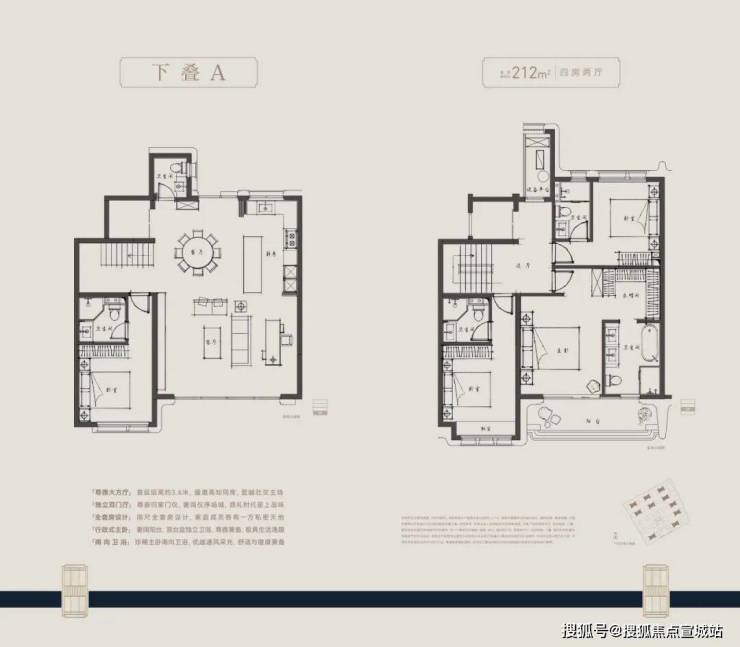 建面约210-280㎡纯4层叠墅,通过上叠北庭下叠南院,独立归家动线、约6m层高地下空间与全套房设计等,推动叠墅空间进化。精装上,嘉格纳、博世等百年品牌加持,尽显极简优雅。