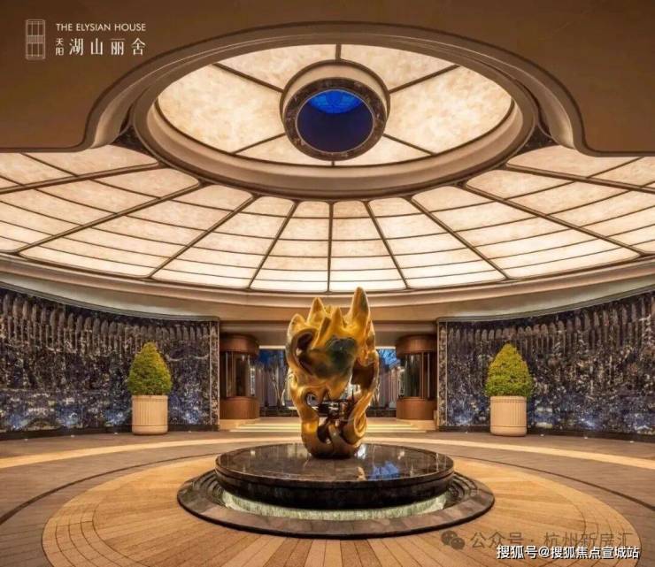 园区里,70年树龄老桩紫薇、桂博园同款椭圆丹桂、水珐景墙旁的乔木红枫,搭配景泰蓝、蓝翡翠等全球进口奢石,把世界珍藏化作私家庭景。大堂室内璀璨的穹顶花窗,是从西湖历史建筑中复刻而来的。