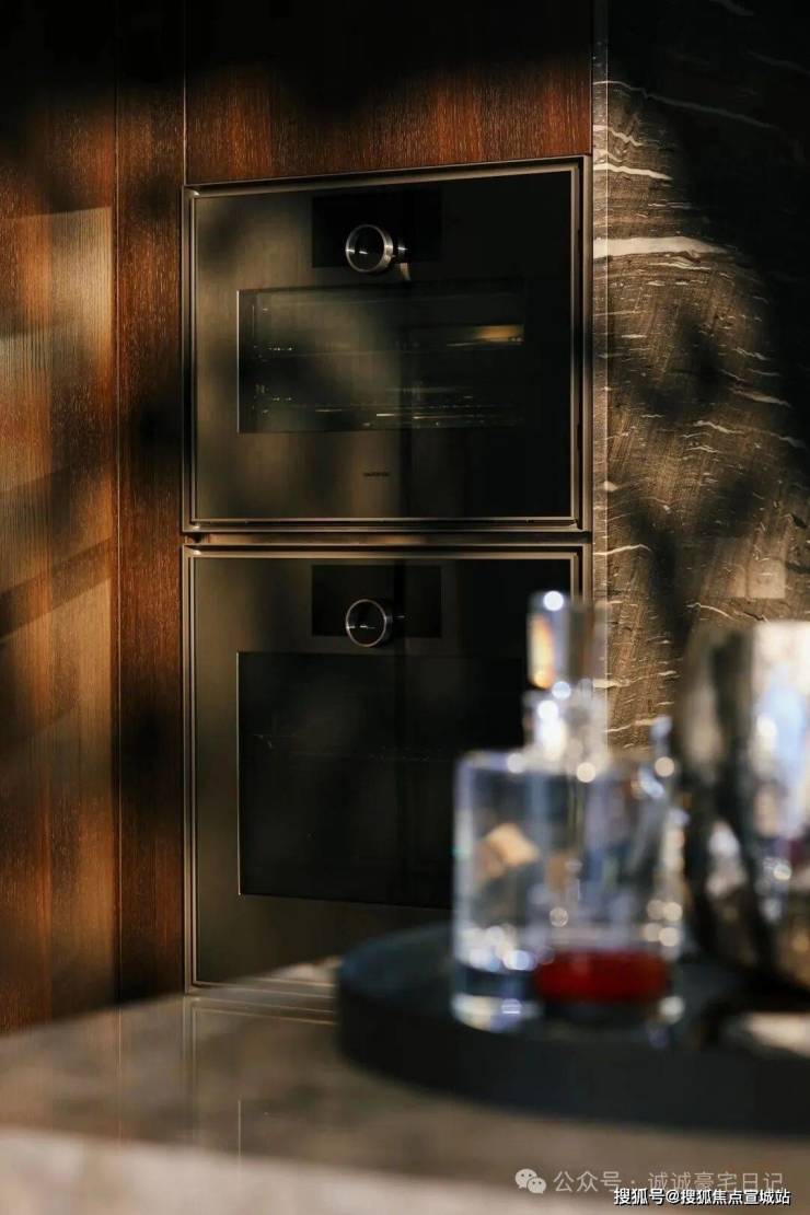 高福云境部分户型中厨橱柜选用由boffi首位艺术总监LuigiMassoni于1972年设计的经典系列,作为全球首款模块化无把手厨房系统,其轻盈的美学外观和凝练的视觉效果,重新定义了生活中的秩序与美感。同时,橱柜中采用的面板皆为Boffi系列中的最高等级用料:金属烤漆面板,呈现出深邃而低调的铜色光泽,不仅视觉高级,亦容易清洁;烟熏橡木面材,则保留最自然的山形木纹,展现出材质本真的温润质感,它们都在质感与功能之间取得双重平衡,为日常生活赋予尊贵而精致的底色。