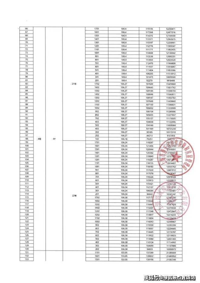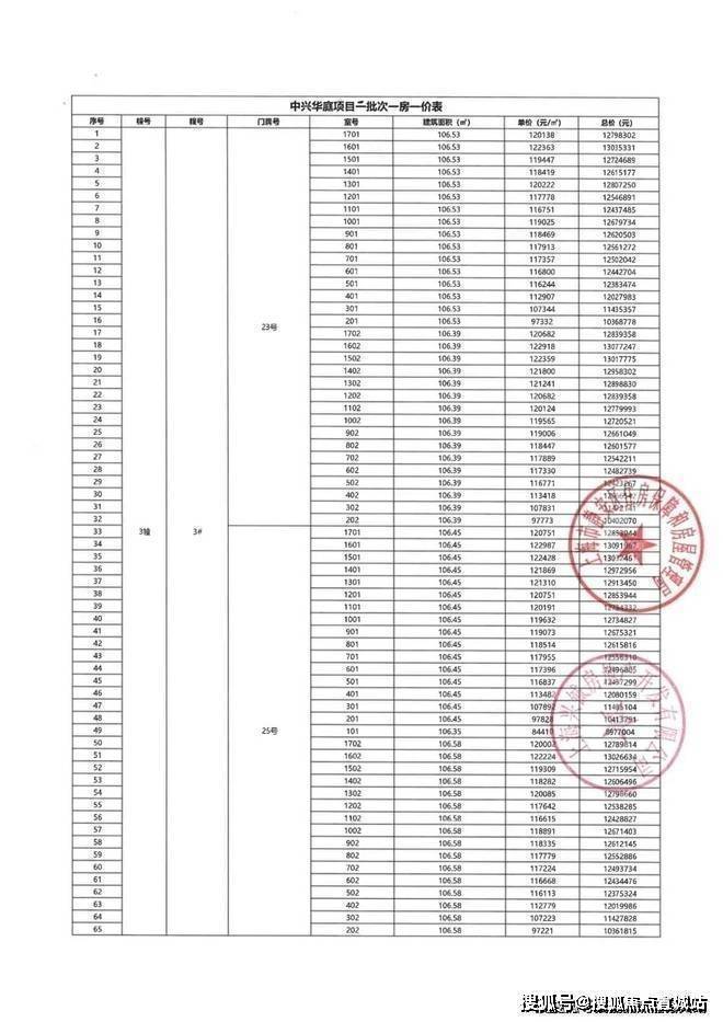 前期一房一价表: