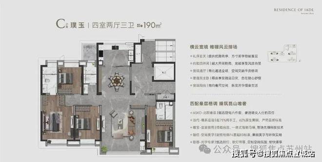 C户型 璞玉丨四室两厅三卫 建筑面积约190m²