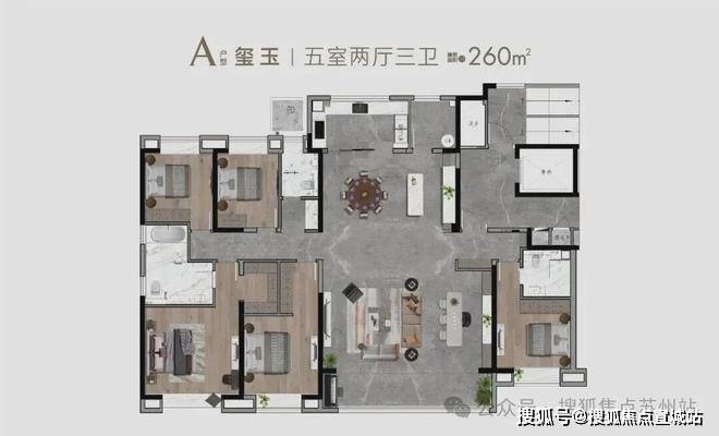 A户型 玺玉 丨 五室两厅三卫 建筑面积约260m²