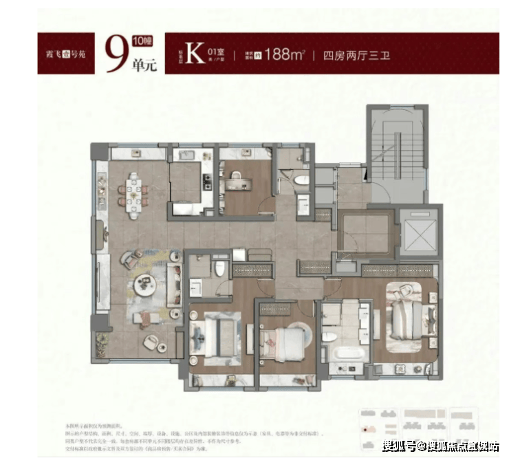 主力户型:建面约98-188㎡3-4房,覆盖刚需改善到奢阔改善全需求,剩余房源以100-101㎡刚需三房及141㎡以上改善四房为主。