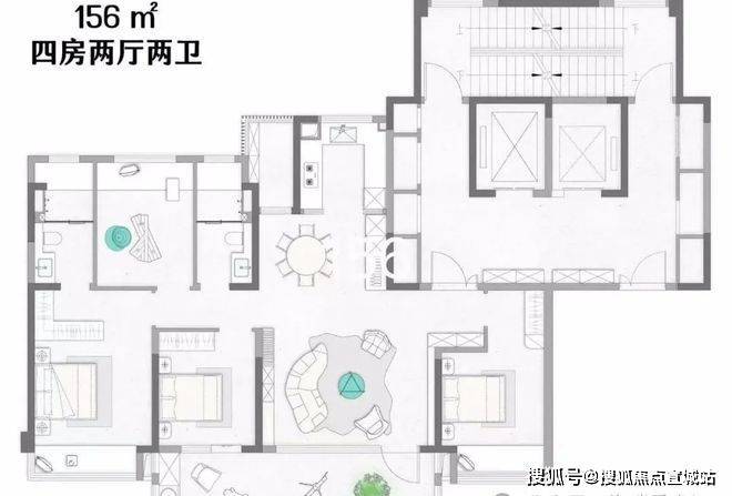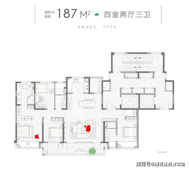 主力户型:建面约 155-242㎡的四房大平层,具体有建面约 156㎡、187㎡、242㎡三种户型。