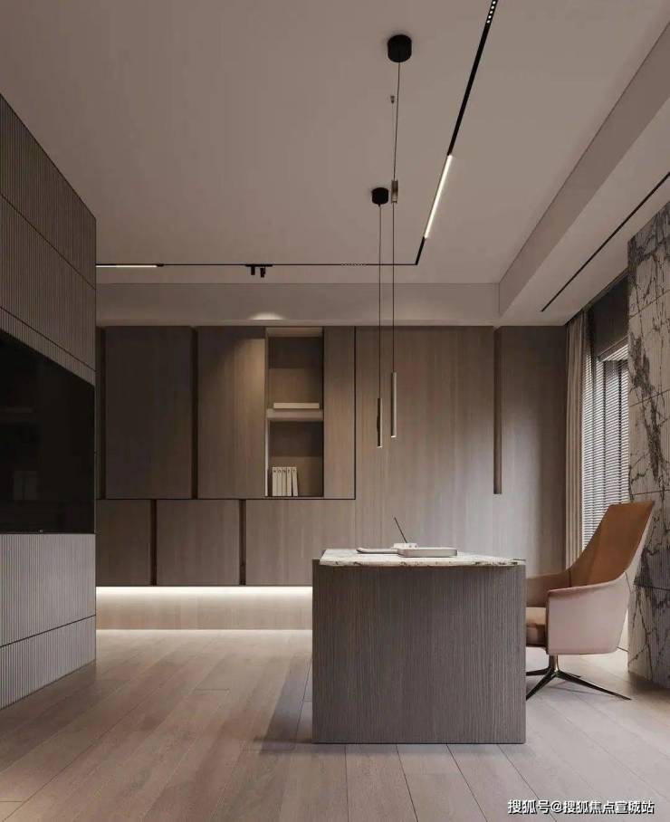 在书房系统里,温暖的木饰面配合着恰到好处的光线,带来一种平和宁静的氛围,空间显得私密而又通透,高级而又大气。