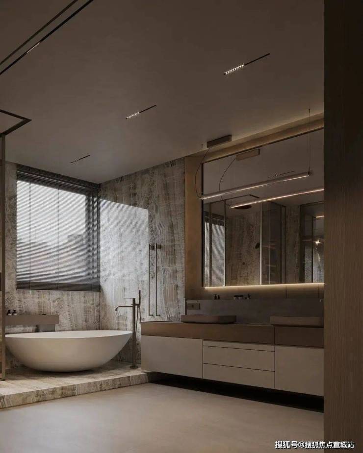 以大理石为主线的卫浴空间,通过轻盈而飘逸的纹理铺陈,展现出优雅而清爽的视觉层次,柔和的布光下,让情绪与身心焕然一新。