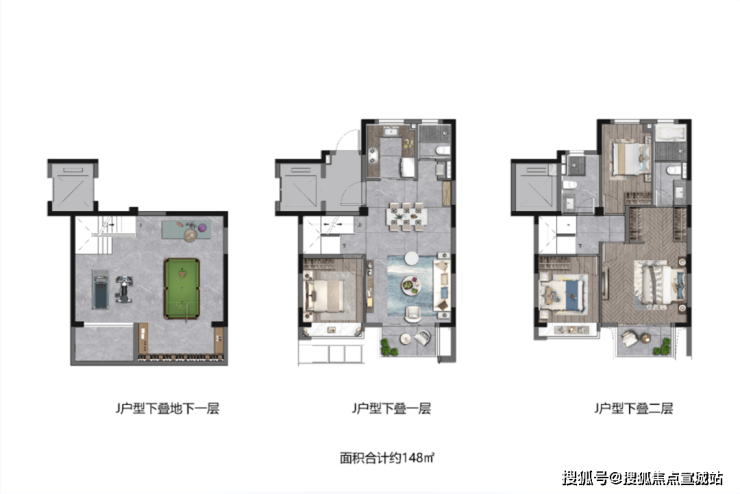 除此之外,项目还有建面约135㎡3房2厅3卫上叠、建面约148㎡4房2厅3卫中叠以及建面约148㎡4房2厅3卫下叠。叠墅产品上有露台下有庭院!