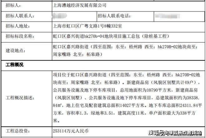 总用地面积10790平方米,地上住宅及配套建筑总面积14027平方米,容积率1.3,单户面积最大为338平方米。工程总投资25.3亿元。