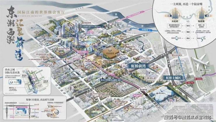 前湾的定位为:“长三角总部经济首选地、国家产城融合示范标杆和绿色开放共享的国际主城”。是虹桥国际开放枢纽城市功能的核心承载区,是虹桥“十四五”发展的新中心。