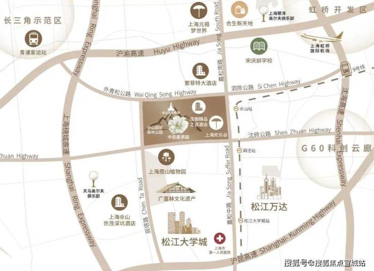 生态方面,佘山国家森林公园、广富林遗址公园、月湖雕塑公园、辰山植物园、欢乐谷、玛雅水上乐园、佘山高尔夫等,均在项目周边。
