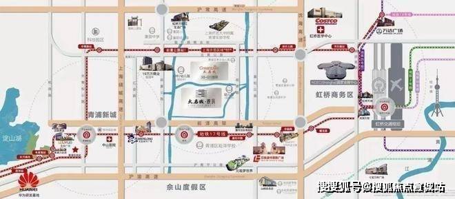 交通配套:紧邻在建的示范区线赵重公路站,直线距离约 800 米,3 站可达虹桥枢纽,4 站可到华为研发基地;距离 17 号线赵巷站约 3 公里;崧泽高架近在咫尺,自驾出行方便。