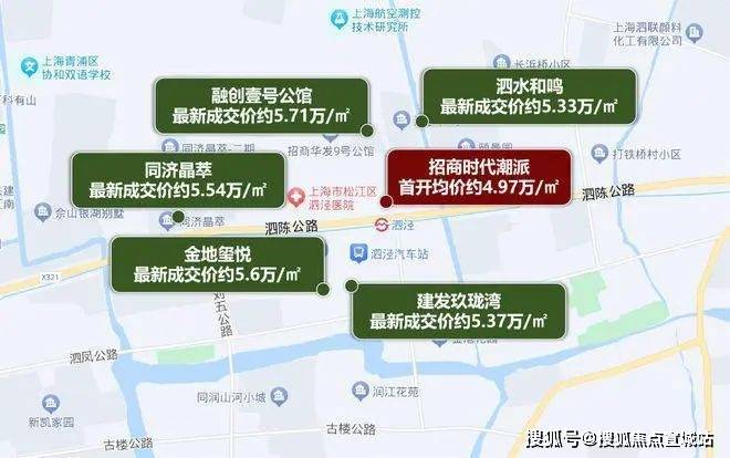 目前,泗泾的金地褐石苑小区二手成交房价大约在5.4-5.8万/㎡之间。金地玺悦小区二手成交房价大约在6.3-6.9万/㎡之间。与招商泗泾TOD项目5.1万/㎡的联动价相比,有着明显的倒挂优势。