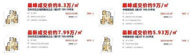 然而同区域地段更好的中核锦悦府,巅峰成交价超过9万/㎡,如今最新数据中有一套中楼层房源5.9万/㎡成交,对比初始约6万/㎡新房均价,甚至已经“破发”!