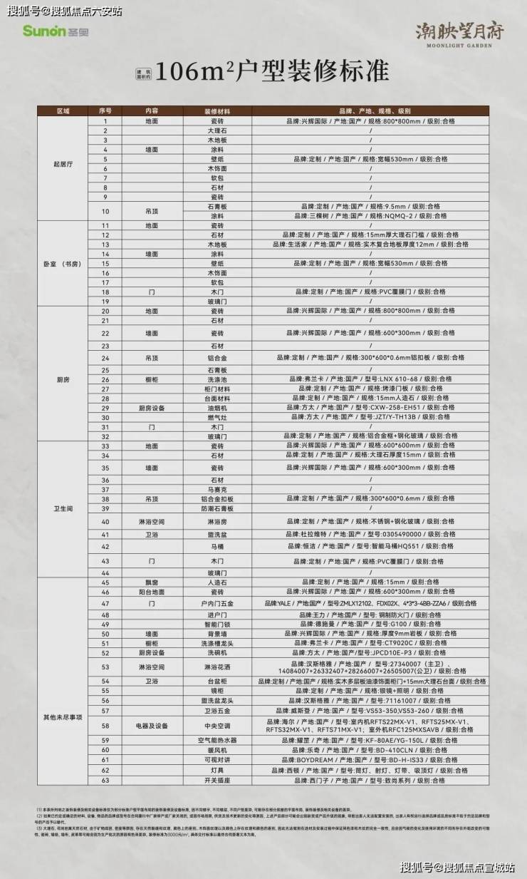 装修标准(过程稿,最终以《商品房买卖合同》及附件等协议为准):
