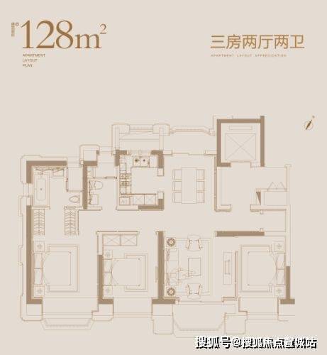 华发公馆推出房源是128套建筑面积约128平三房两厅两卫公寓。