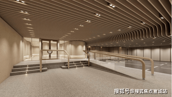 步入二楼入户大堂,圆弧吊顶以柔美的曲线勾勒,与远处的江岸线形成巧妙呼应。灯光巧妙地勾勒出空间的层次感,配合大面积落地窗,将视野无限延展至江畔。