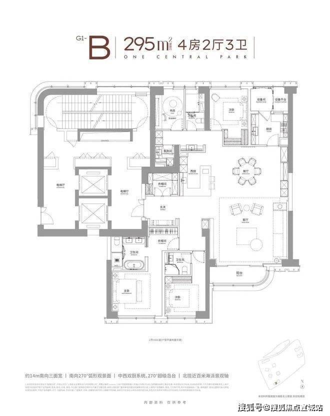 整个户型有几个重点跟大家拎一下:户型实现了全落地窗环绕、大横厅结构、270°弧形窗,极致的通透感、绝佳视野与豪宅空间所需的独立性、全景仓视野被发挥的淋漓尽致,堪称新一代豪宅的居住体验标杆.