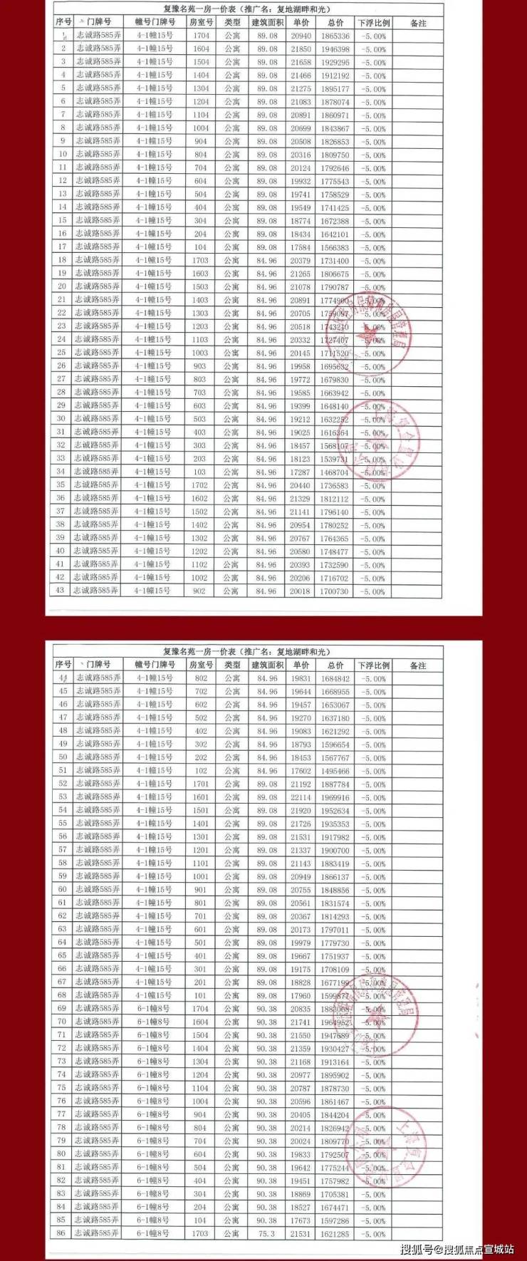 附一房一价表: