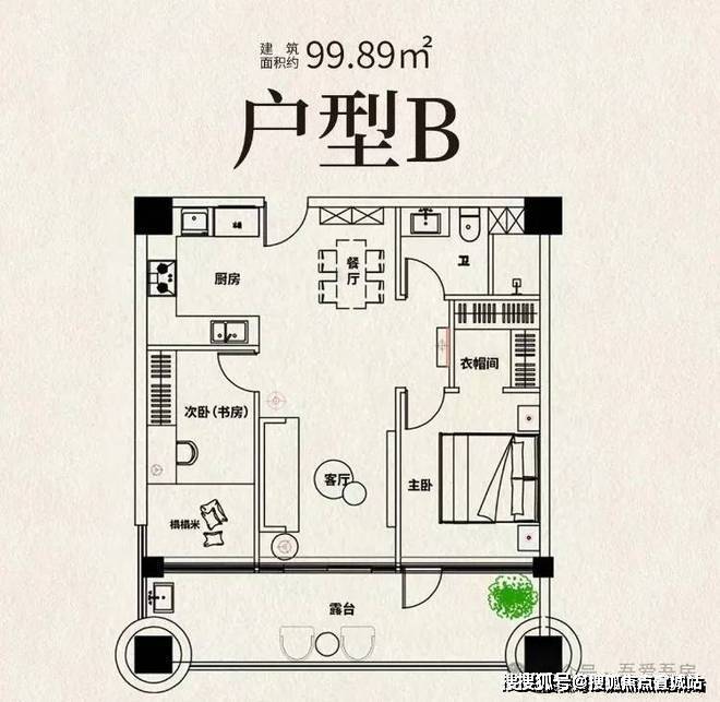 【户型特点】:户型方正,三开间朝阳,赠送20㎡超大露台
