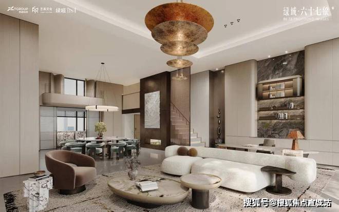 跃象空间的客厅以高挑的天花板和复古金属吊灯为焦点,角落的雕塑艺术品营造出一种历史沉淀的美感.绿城六十七象售楼处电话:400-8558-334