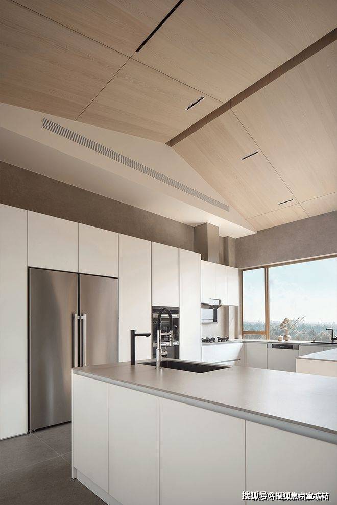 厨房线条洗练,金属的冷静质感与木质的温润柔雅,突显出刚柔兼备的审美立意。