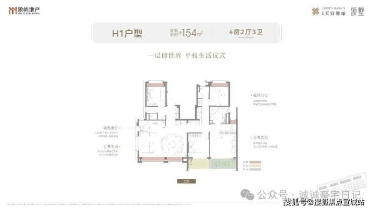 建面约154㎡中层平墅户型:约14.2m南向大开间,约7.1m大横厅设计,强化室内采光通风效果。洄游方厅:客餐厨融为一体,令一家人的亲情聚场不再有「孤独的角落」。奢居四房:满足多元家庭居住,无论是二胎之家还是三代同堂,都能各得其所。