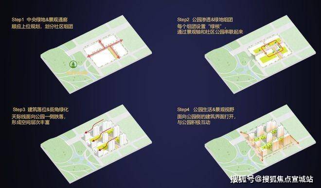 与此同时,建筑天际线也巧妙地向公园侧跌落,甚至面向公园一侧的建筑建面,也是在充分朝这里打开的。