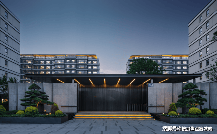 南侧主干道主动退让绿化空间,让归家之路先穿过一片 “城市绿洲”。现代都市与东方韵味相结合的社区主大门,门头两侧,移植的是价值不菲的罗汉松,带来第一眼的视觉盛宴。