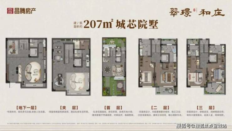 翠璟和庄:滨江西|万达旁|600多万五层别墅!院子+地下室+星空露台|门口就是城市公园!