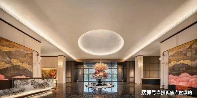 酒店入户同样是对标半岛酒店,车马院落客区的檐口、标识、星空顶等,增强入户的仪式感和奢华感。落客区的接待门采用海鸥丽晶酒店同款,尽显酒店式归家体验。