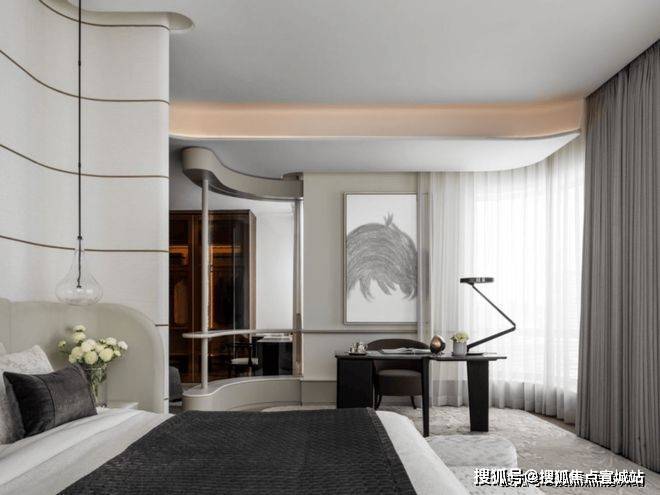 主卧豪华套房,自带弧形阳台,让赏景休闲成为生活的一部分