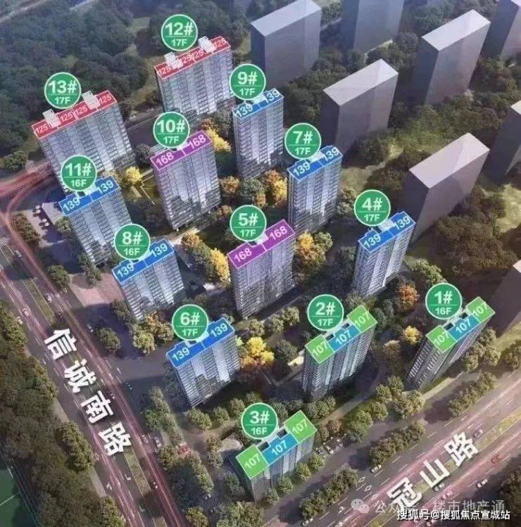 规划楼栋:共规划 13 个楼栋,为 16/17 层的高层。